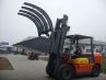 क्लॅम्प एक फोर्कलिफ्ट संलग्नक आहे ज्यामध्ये एक फ्रेम, फ्रेमशी जोडलेला एक हात आणि हाताला जोडलेला सिलेंडर समाविष्ट आहे. होल्डिंग हातामध्ये डाव्या आणि उजव्या हातांचा समावेश होतो. सिलेंडरचे एक टोक डाव्या हाताने हिंग केलेले आहे आणि सिलेंडरचे दुसरे टोक उजव्या हाताने हिंग केलेले आहे. डावा हात आणि उजवा हात तेल सिलेंडरद्वारे उघडण्यासाठी आणि बंद करण्यासाठी नियंत्रित केला जातो. पहिल्या कनेक्टरवर बिजागर बिंदूच्या डावीकडे किमान एक प्रथम मर्यादा भोक व्यवस्था केली आहे, आणि दुसऱ्या कनेक्टरला बिजागर बिंदूच्या उजवीकडे किमान एक प्रथम मर्यादा भोक प्रदान केला आहे. डाव्या हाताचा आणि उजव्या हाताचा बंद होणारा कोन मर्यादित करण्यासाठी प्रथम मर्यादित भोक प्रथम मर्यादित घटकासह घातला जातो, ज्यामुळे क्लॅम्पचा किमान क्लॅम्प कोन मर्यादित होतो आणि डाव्या हाताची आणि उजव्या हाताची टक्कर टाळता येते. होल्डिंग क्लॅम्पमध्ये प्रथम मर्यादा छिद्र आहे, जे डाव्या हाताचा आणि उजव्या हाताचा बंद होणारा कोन मर्यादित करू शकतो ज्यामुळे क्लॅम्पचा किमान क्लॅम्पिंग कोन मर्यादित होतो आणि डाव्या आणि उजव्या हाताची टक्कर टाळता येते. मग ते लहान वस्तू पकडू शकते. रचना सोपी, ऑपरेट करणे सोपे आणि मजबूत व्यावहारिकता आहे.