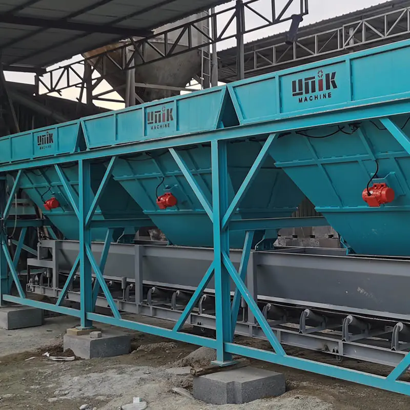 काँक्रीट बॅचिंग मशीनमध्ये सामान्यत: हॉपर, कन्व्हेयर बेल्ट किंवा स्क्रू कन्व्हेयर आणि कंट्रोल सिस्टम असते. हॉपरचा वापर सामग्री ठेवण्यासाठी केला जातो, तर कन्व्हेयर किंवा स्क्रू कन्व्हेयरचा वापर मिक्सिंग एरियामध्ये सामग्री वाहतूक करण्यासाठी केला जातो. सामग्रीच्या प्रवाहाचे निरीक्षण करण्यासाठी आणि मिश्रणात जोडलेल्या प्रत्येक सामग्रीचे नियमन करण्यासाठी नियंत्रण प्रणाली वापरली जाते.