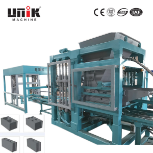 स्वयंचलित सिमेंट ब्रिक मशीनमध्ये प्रामुख्याने नऊ भाग असतात: फ्रेम असेंब्ली, प्रेशर हेड असेंब्ली, व्हायब्रेशन असेंब्ली, फीडिंग ट्रॉली, हॉपर असेंबली, प्लेट फीडर, ब्रिक आउटपुट मशीन, हायड्रॉलिक सिस्टम आणि कंट्रोल सिस्टम. काम करताना, मिश्रित साहित्य हॉपरमध्ये साठवले जाते, आणि वेगवेगळ्या विटांसाठी लागणारे साहित्य वेळ नियंत्रणाद्वारे फीडिंग ट्रॉलीमध्ये हस्तांतरित केले जाते, आणि फीडिंग बॉक्स फीडिंगसाठी ऑइल सिलेंडरद्वारे मोल्डच्या वरच्या बाजूला पाठविला जातो, आणि प्रेशर हेड खाली दाबले जाते आणि त्याच वेळी कंपन रॅपिड प्रोटोटाइपिंग सुरू केले जाते, प्लॅटफॉर्म टू ब्रीक्स आणि प्लॅटफॉर्म फीड आउट केले जाते. संपूर्ण उत्पादन प्रक्रिया आपोआप नियंत्रण प्रणालीद्वारे नियंत्रित केली जाते. आमच्याकडे वेगवेगळ्या आवश्यकता पूर्ण करण्यासाठी विविध आकारांची ब्लॉक बनवणारी मशीन्स आहेत, जर तुम्हाला तपशीलवार माहिती हवी असेल, तर कृपया sales@unikmachinery.com वर मोकळ्या मनाने आमच्याशी संपर्क साधा.